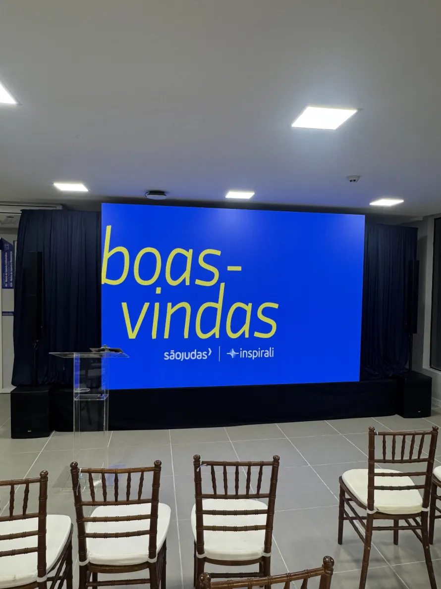 Seja para uma convenção de vendas, confraternização de fim de ano, palestras ou lançamentos de produtos. O Painel de LED traz impacto, brilho e profissionalismo que um telão comum jamais alcançará. Montamos no tamanho exato da sua necessidade (trabalhamos com locação por metro quadrado), garantindo alta resolução até mesmo em ambientes muito iluminados. Nossos técnicos acompanham do início ao fim para garantir que sua apresentação rode com perfeição.