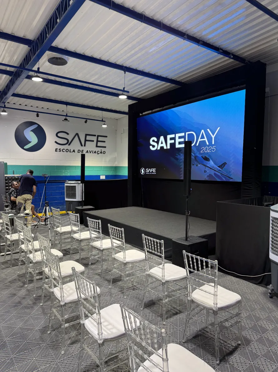 Sim! O Painel de LED é o nosso carro-chefe. Porém, caso você precise, podemos fornecer toda a estrutura complementar, como sonorização, palcos, iluminação cênica e projeção, para que você não precise gerenciar vários fornecedores.